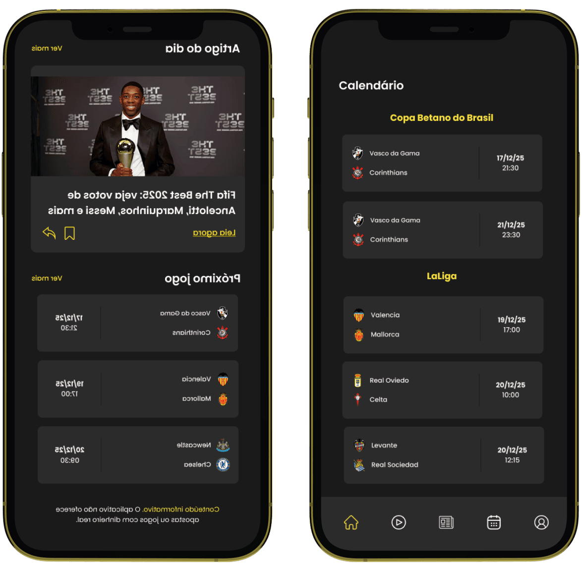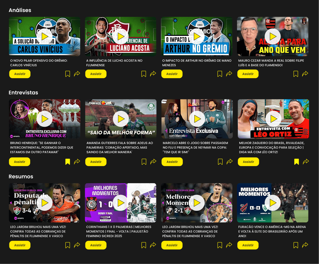 vídeos, transmissão ao vivo, entrevistas e analises de eventos esportivos – no aplicativo móvel